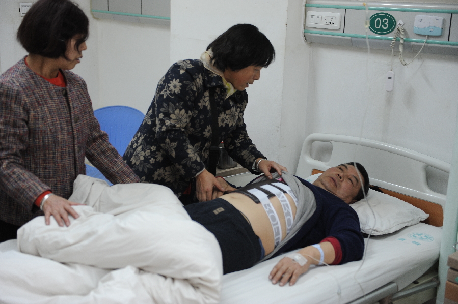 男子走后,陈师傅慢慢的爬起来给110打了报警电话,大概10分钟后,民警也赶到了事发现场。随后陈师傅便被送往四0七医院进行急救。陈师傅的主治医生告诉记者,经初步诊断,目前陈师傅三根肋骨骨折,具体伤情还有待做进一步的检查。