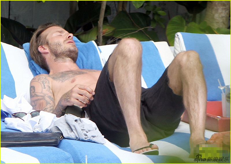 贝克汉姆半裸日光浴 表情享受不忘卖萌