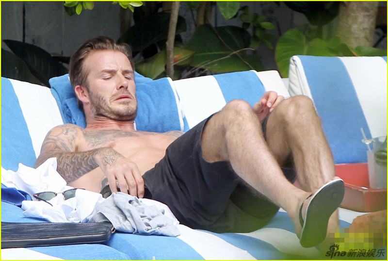 贝克汉姆半裸日光浴 表情享受不忘卖萌
