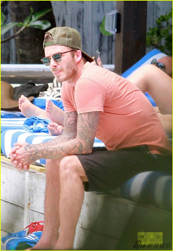 贝克汉姆半裸日光浴 表情享受不忘卖萌