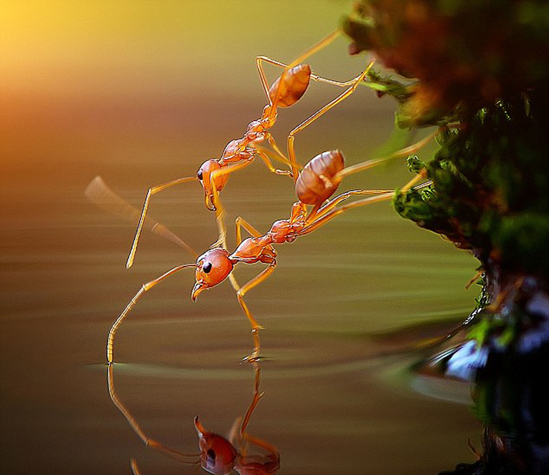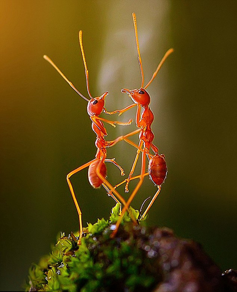 印尼摄影师Rhonny Dayusasono在自家后花园抓拍到两只正在跳舞的小蚂蚁。