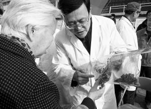 省食品药品检验所的工作人员还现场向市民展示了地黄、金银花、山药等10多种常见中药材的真假样品。几位药品检验专家们还向市民传授鉴别方法。比如,正品金银花的特征是:花蕾黄绿色,呈棒状,上粗下细、多为干燥花蕾。而常见的伪品特征是:灰棕色或红棕色,多花开放。正品山药的特征是:呈圆柱形、直径1~3厘米,切片为横切或斜切片,切片较规则,白色粉状,嚼之发粘。而山药伪品的特征是:切片表面有的可见浅粉红色,中心多有细孔隙。在现场,许多市民用手机拍下真伪中药材的样品,还有市民向专家咨询中药材的鉴别方法。