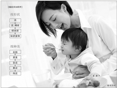 李梅介绍,宝宝的喂养方式不同,添加辅食的时间也有差别。张峰告诉记者,宝宝想吃辅食时,会给出明确的信号。比如宝宝会对大人吃东西的行为很感兴趣,刚开始,宝宝感兴趣的只是餐具,试着给宝宝一个勺子玩,如果宝宝很满意,说明他中意的是餐具,而不是食物。如果宝宝还是对你吃的食物感兴趣,那么就可以尝试添加辅食了,还有,宝宝能坐在宝宝椅上,用手指捏食物,也是可以给他添加辅食的信号。