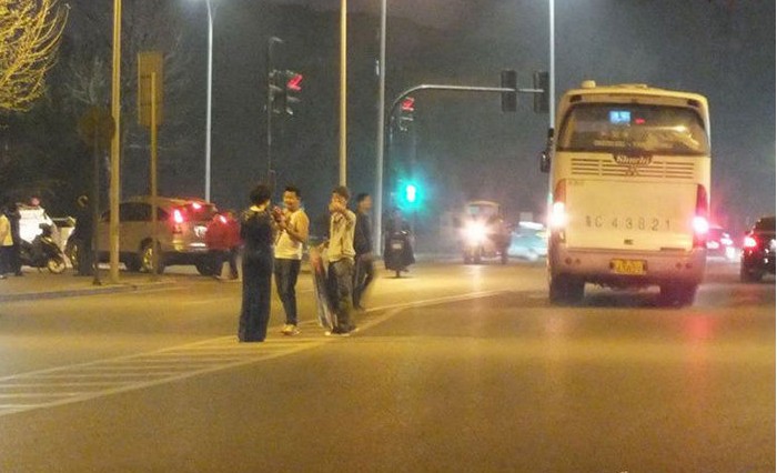 情侣霸占马路中央拍照1小时