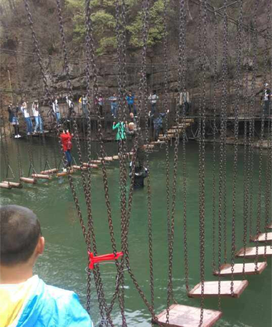 老人走吊桥险坠河 工作人员跳水中肩膀支撑老人过河