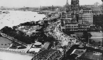 大量上海难民正在撤进租界区。