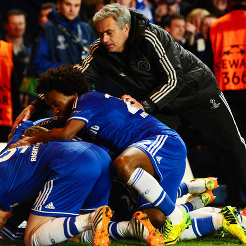 在今晚的这场巅峰对决之前,很少有人看好切尔西能够晋级,可是穆里尼奥的球队从未轻易认输,今晚的比赛尤其如此。虽然王牌阿扎尔早早伤退,可是蓝军用不屈的斗志为自己赢得一次又一次的机会,许尔勒、奥斯卡、埃托奥等人在场上几乎满血的奔跑,而他们的目标就是进球。上半场,许尔勒做到了,他为切尔西打开了胜利的大门,下半场,切尔西流年不利,连续由许尔勒和奥斯卡击中横梁,命运似乎已经不站在切尔西这边,甚至斯坦福桥的球门已经为切尔西加上了盖子,可是穆里尼奥成为球队的救星。