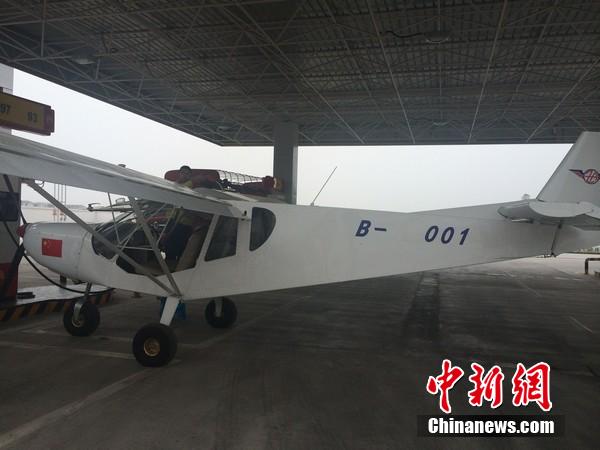 图为小飞机在试飞过程中降落加油。 中新社发 陈艳秋 摄