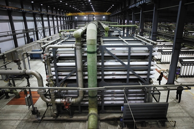 在唐山曹妃甸区,北控水务集团设立的北控阿科凌曹妃甸海水淡化有限公司正在进行海水淡化生产,“现在1吨海水可收0.46吨淡水”,厂里负责人周海燕说,目前日产5万吨,仅向曹妃甸区供水,是作为100万吨海水淡化进京的先期示范项目。