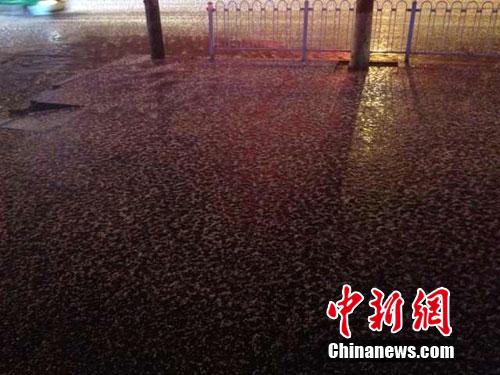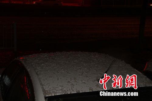 4月14日19时30分许,兰州主城区电闪雷鸣,突降冰雹,持续了半个小时。丁思 摄