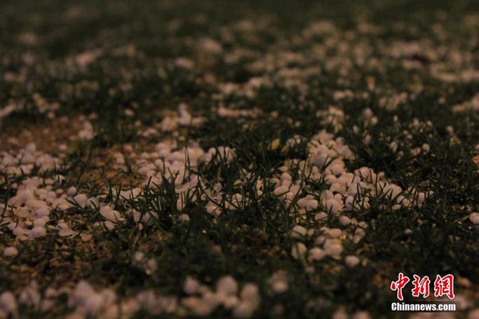4月14日晚间,兰州主城区突降冰雹,持续了半个小时左右,落地后片刻化成积水,来往车辆溅起水花,部分路段路边积水没过脚踝,造成市民出行不便。李清晓 摄