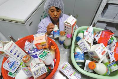 某品牌工作人员正在检测奶制品