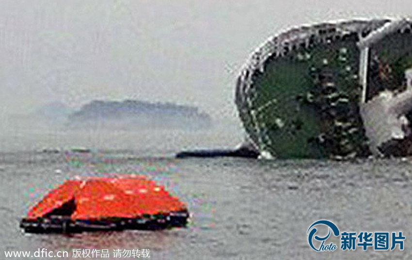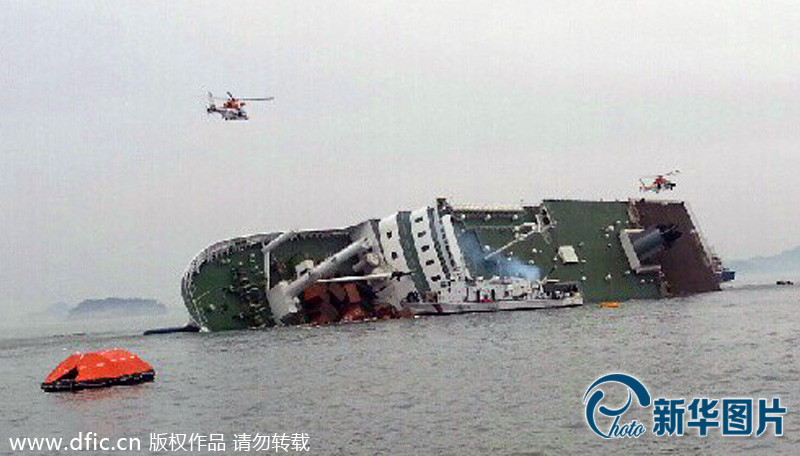 当地时间2014年4月16日,载有470余名旅客的韩国“岁月”号客轮在全罗南道珍岛郡海上触礁沉没。(来源:东方IC)