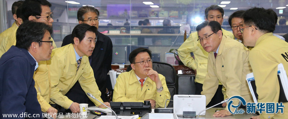 当地时间2014年4月16日,韩国首尔,中央灾难安全对策本部一片忙碌。