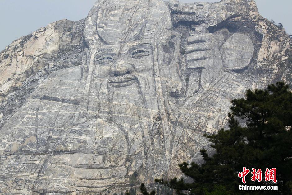 4月20日,位于山东省临沂市西北部的“寻仙沂蒙山”(龟蒙)景区招聘的“女蜘蛛侠”正式上岗,开始为世界上最大的山体雕像——寿星巨雕洗脸,以迎接将于4月26日开幕的第十一届蒙山拜寿大典。据了解,这名“女蜘蛛侠”为山东当地人,此前一直在从事高空玻璃幕墙的清洗工作。雕刻于2003年的寿星巨雕高218米、宽200米,是乐山大佛的3倍,2004年正式载入吉尼斯世界纪录。中新社发 钟欣 摄