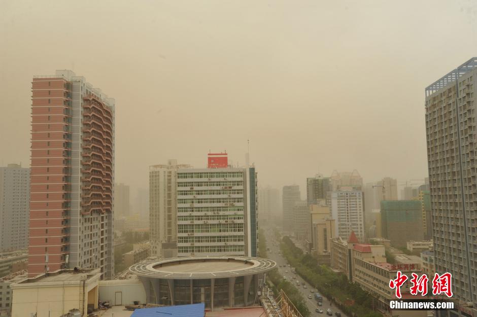 4月23日,强沙尘天气侵袭新疆库尔勒。中新社发 确·胡热 摄