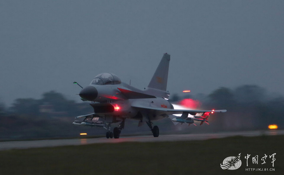 近日,广空航空兵某团抓住可飞天气组织跨昼夜训练,第一批10多架国产新型战机以跟进方式全加力起飞,直奔对抗空域。 “红军1批1架,距离××,方位××!”飞行员刘飞实施一对一自由空战训练,一进入空域就接到指挥所通报。他立即爬升高度,打开雷达对目标进行搜索……对手快速实施了机动和干扰,破坏他的稳定截获。刘飞再一次将目标锁定,随即发射一枚中距导弹。转入近战后,双方连续机动滚转、切半径……自由空战对抗进入白热化状态。 一个多小时后,刘飞和对手赵全新刚一返航着陆,立即双双走进战术评估室,利用战术训练评估系统复盘评估空战情况。