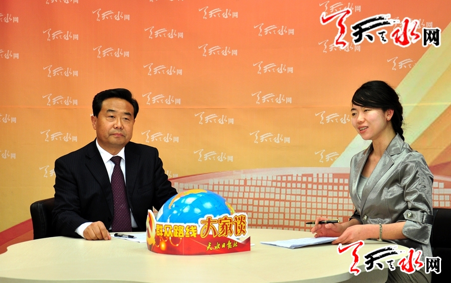 天天天水网讯【记者 何永德 见习记者 黄虹】 4月23日下午,天天天水网“群众路线大家谈”视频专访栏目迎来节目开播以来的第三位嘉宾——武山县委书记索鸿宾。全面介绍了武山县在深入开展党的群众路线教育实践活动以来的相关情况,并就群众关注度较高的灾后重建、入托难等问题一一作了回应。