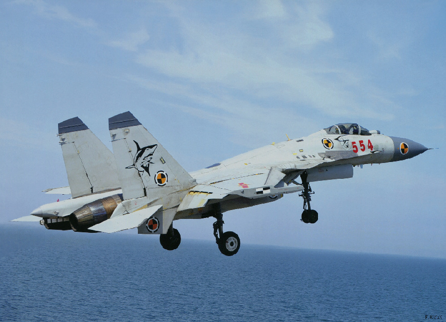 554号歼15采用海军灰色涂装。