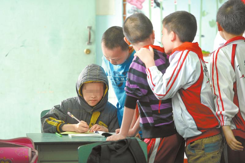 4月28日,教室里的小良陈受到老师和同学的特殊照顾。