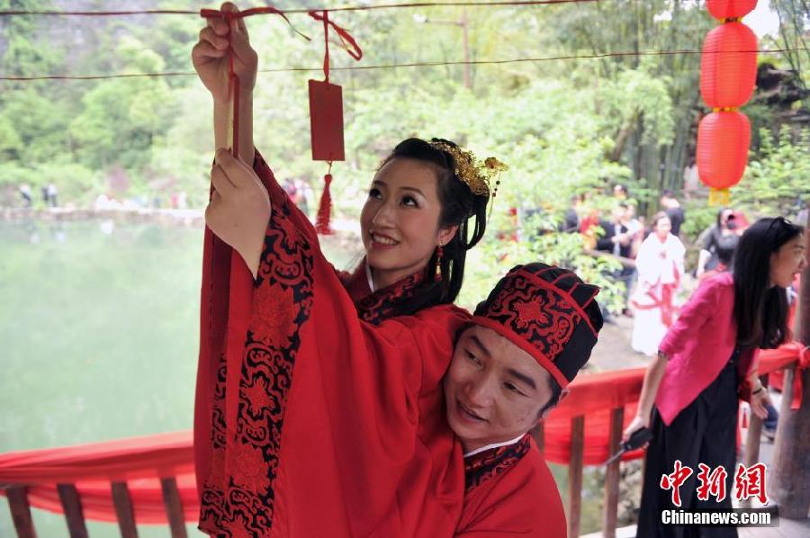 重庆酉阳桃花源举行首届传统汉服集体婚典