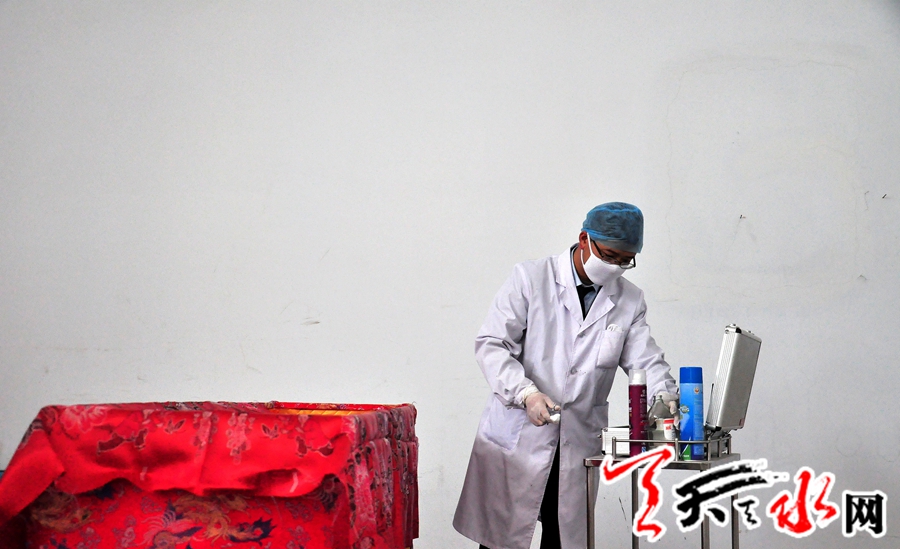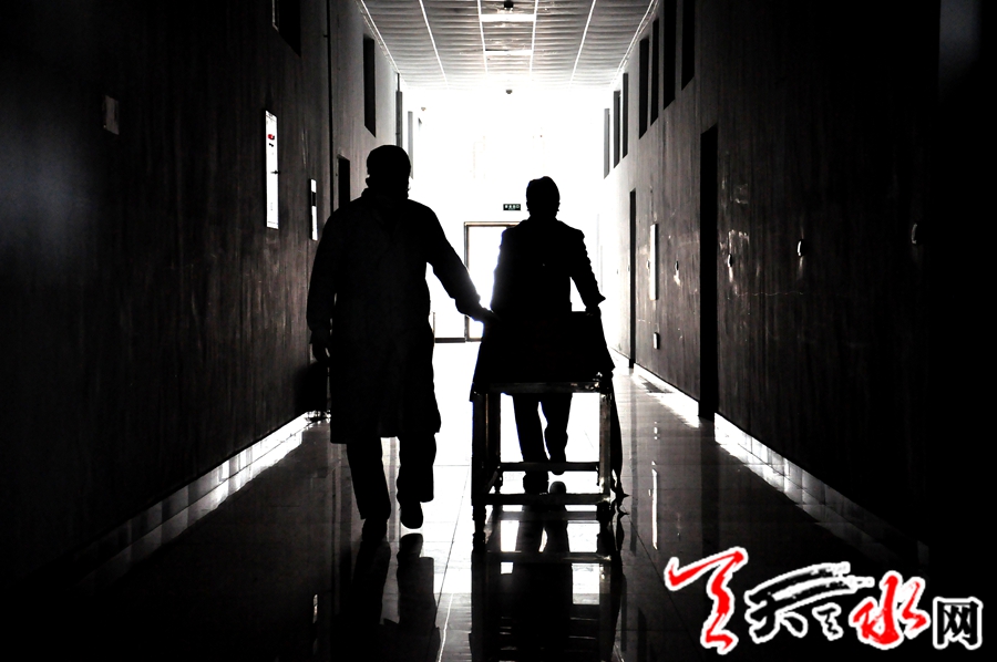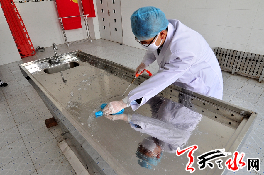 5月2日,“五一”小长假第二天,记者怀着肃穆的心情在天水市殡仪馆见到这位颇显儒雅之气的80后时,他刚从医院运送来一位逝者。对于郭金鹏而言,节假日于他仅是一种向往,因为在他从事殡葬行业的近四年时间里,随时就会有殡葬业务召唤他,尤其在接到非正常死亡的业务,不但要在第一时间赶到,而且运送回来后,要按照家属的要求,进行细致的整容,记者在现场看到,整理衣服、清洗面部、涂唇、上腮红、轻轻地梳理头发等这一整套熟练的动作,在他手里有节奏的完成,“让逝者体面而有尊严的离去,这是我们在面对逝者时的最终目标。”他说。
