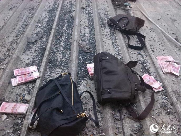 一位目击者告诉记者,民警在窗外取钱时,她也在现场。她看到,每一捆大约是一万元,除了外面散落的12捆外,三个包里也装满了钱,主要是百元大钞,另有零星的50元和10元等。其中,最重的一个包里有32万元。据民警现场简单估算,丢下来的钱,有60多万元。