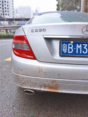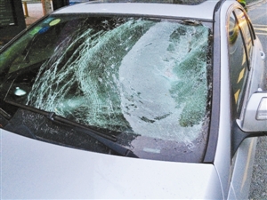 在肇事车辆最终停车位置彩福大厦公交站台旁,记者见到了肇事的银白色小车。小车左前方车轮下卡着一辆女式电单车,正是张女士的那辆,同样的银白色。小车左侧挡风玻璃已基本碎裂,并有明显的凹陷,车头也有因撞击产生的凹痕。由于长距离的拖行,小车尾部也沾有点点血迹。