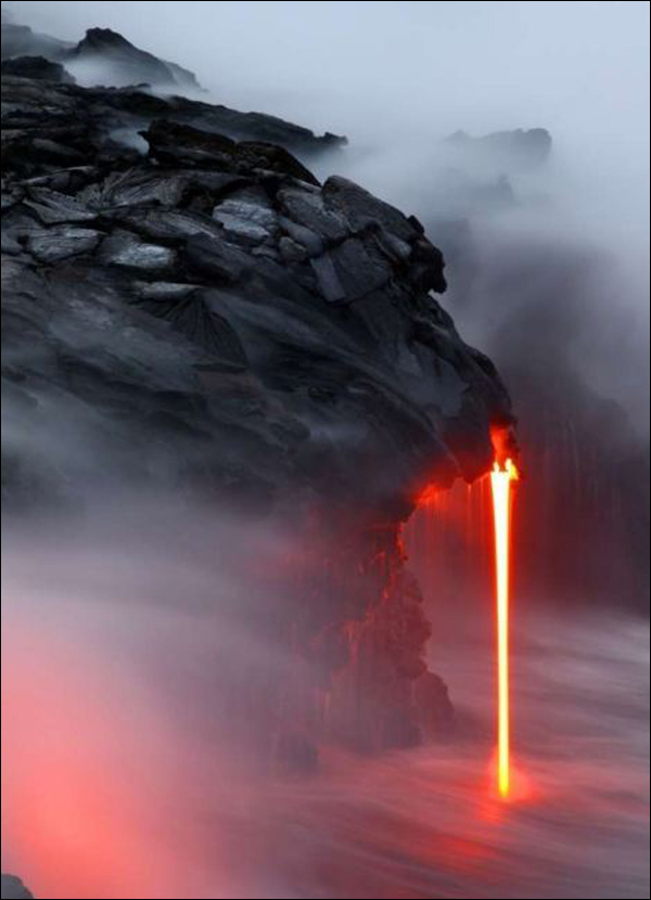 摄影师冒死拍摄夏威夷岩浆入海景象
