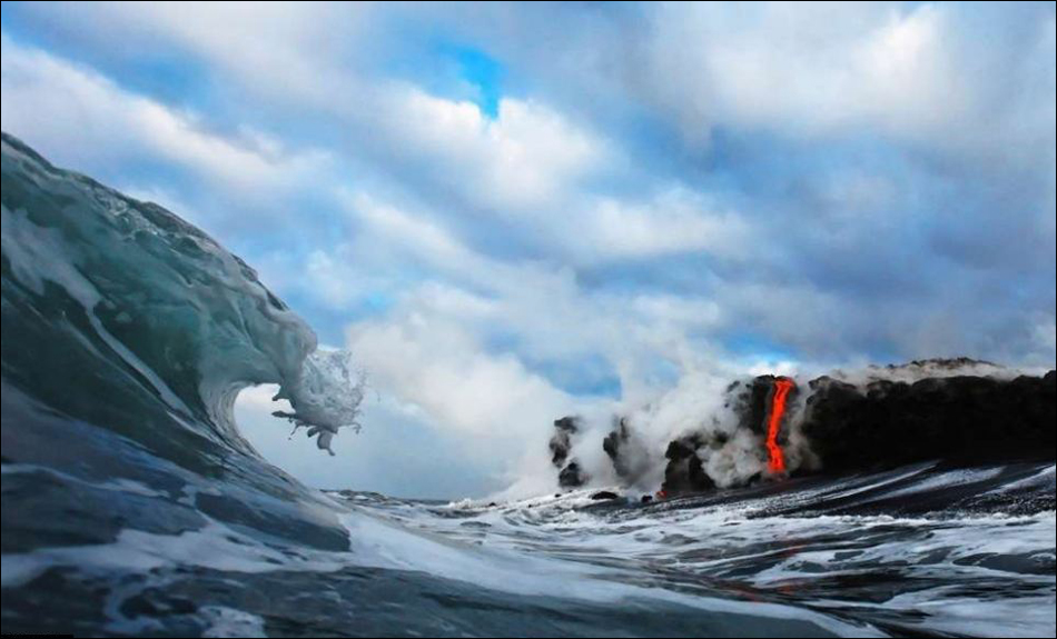 摄影师冒死拍摄夏威夷岩浆入海景象