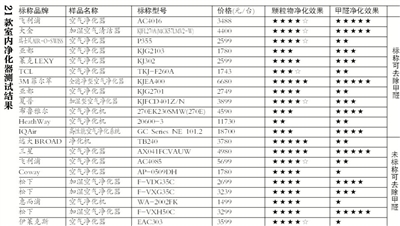 经国家家用电器质量监督检验中心测试发现,净化器的净化能力差别较大,21款室内净化器在颗粒物净化效果上相差6倍,而12款声称具有除甲醛功能的净化器,甲醛净化效能最高的为1.984 m3/(h·w),最低的只有0.255 m3/(h·w)。