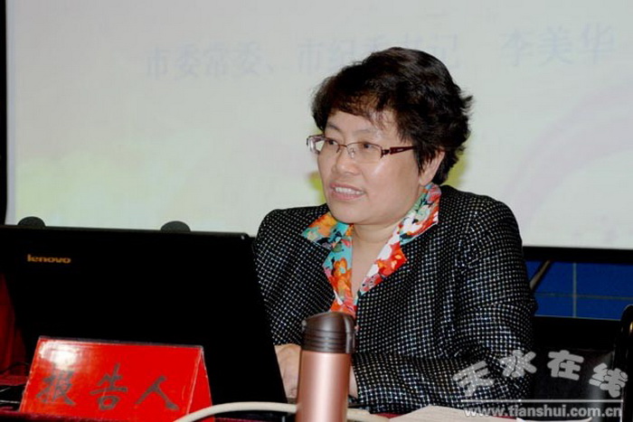 5月12日,在全市县处级领导干部学习贯彻习近平总书记系列讲话精神集中轮训班上,天水市委常委、市纪委书记李美华做了题为“深入学习贯彻党的十八届三中全会精神,扎实推进党风廉政建设和反腐败工作”的专题辅导报告。