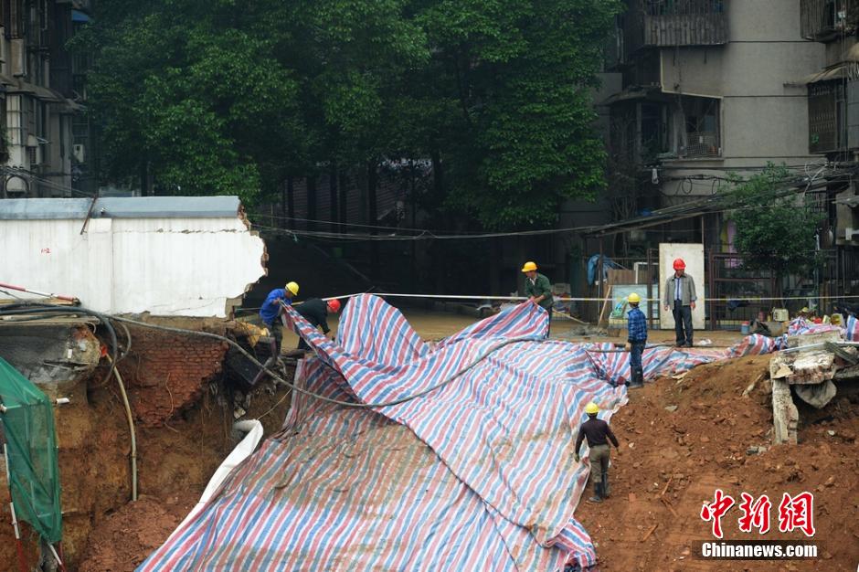 长沙一小区道路塌陷现场封锁 周边居民全部撤离