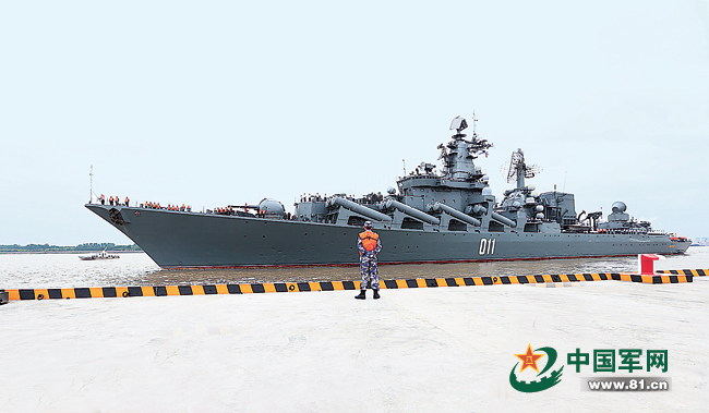 “瓦良格”号是“光荣”级导弹巡洋舰的3号舰,1983年7月下水,1989年10月16日服役,那16枚烟囱一般粗的远程反舰导弹,战斗部可装载1吨高能装药或数百公斤重的核弹头,使它获得了“航母杀手”的称号。该级舰主要担负舰艇编队的防空和反潜任务,因而强调单舰的综合作战能力,舰上导弹、火炮、鱼雷样样俱全,反舰、防空、反潜能力兼备。