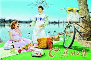 在“求婚照”里,她和“男朋友”正在湖边野餐,湖中游弋着黑天鹅,地上铺着野餐垫,摆放着蛋糕、水果和野餐篮等。“男朋友”双膝跪地,右手拿着求婚戒指,海因茨坐在地上,一脸诧异又欣喜的表情。