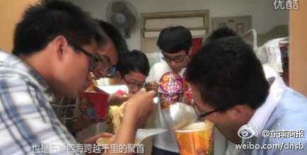 “宿舍的兄弟们来自天南海北,每个人的口味不一样,但唯一能体现出融合的,就是泡面。”短片的导演王塑巍从小就喜欢玩摄影,拍短片,为了能拍得像,他仔细揣摩了舌尖系列的拍摄手法和语言特色,并且设定了很多场景,拍摄时与室友反复修改,形成了短片。拍摄中,他们加入恶搞因素,受到器材、场地等限制,有时一个片段要拍摄好几遍。端着泡好的泡面走过来的片段,拍了好几遍,就是想拍出“丰收的喜悦”。