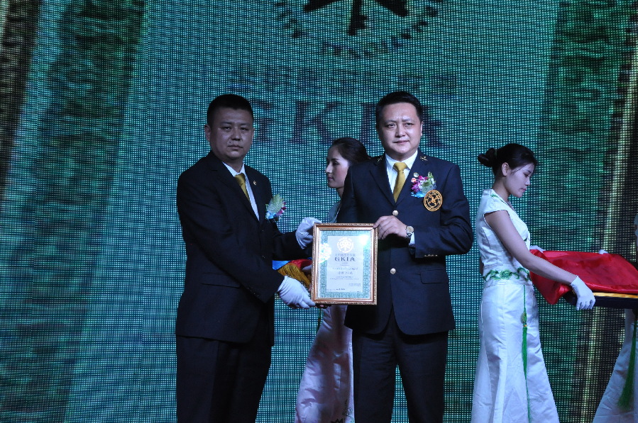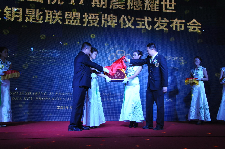 (金钥匙国际联盟总部运营官张涛为恒顺•江山悦项目颁证、授牌、授勋带 )