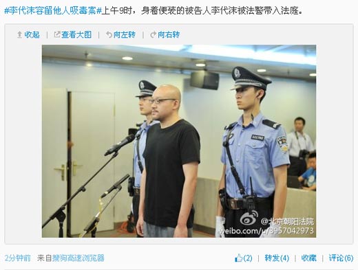 李代沫容留他人吸毒案定于2014年5月27日上午9时在北京市朝阳区人民法院依法公开开庭审理。
