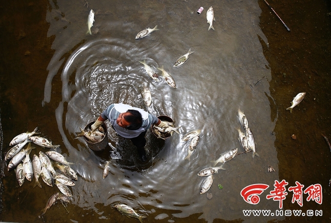 “我养的大部分是鲢鱼、鲫鱼和草鱼,原计划今年7月捕捞,和买家把价钱都谈好了。”吴振峰说,这批鱼苗是他2011年7月投进水库中的,“现在死了上千条,损失起码在3万元”。