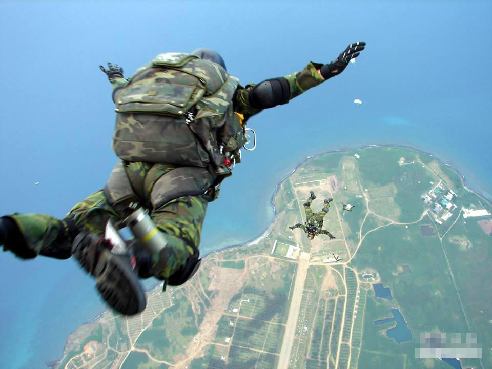 日前一组台军特种部队的照片出现在网上,通过照片可以一窥台军特种部队的日常训练科目。图为高跳低开跳伞训练