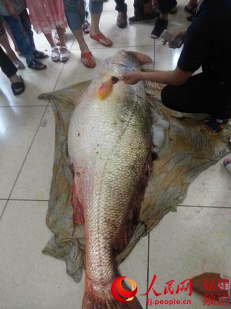 端午节,福建省福安市下白石镇一渔民家收到了一条100多斤重、价值300万元的黄唇鱼,在村里村外引起轰动。据知情人透露,黄唇鱼是这家人的女婿所赠送的端午节礼物。图片来源:人民网