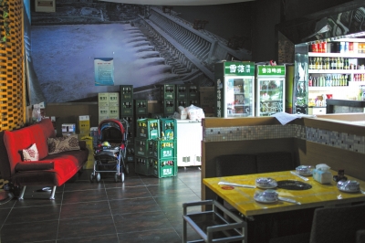 火锅店里的沙发旁放着婴儿推车,王文连就是从这里把孩子抱走的。《都市快报》供图