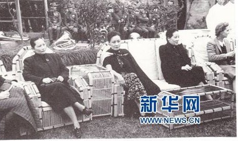 宋美龄三姐妹重庆走秀图,自左至右分别为宋霭龄,宋美龄,宋庆龄。新生活运动开始后,宋美龄倾以热情,并动员自己的姐姐譪龄、庆龄在重庆举办了一场时装秀。