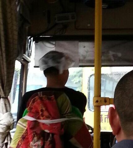 今日下午,网友“@拽拽爱肉丝”发微博称,13时许,在南充市内乘坐23路公交车时,发现驾驶员头顶着一个塑料袋。她观察了一会才发现,因为漏雨,车外下大雨,公交驾驶室下小雨。为了不影响驾驶,司机只好将塑料袋戴在头上。