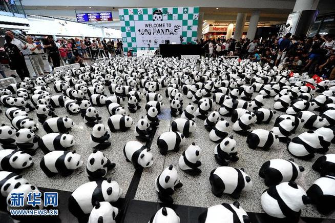 6月9日,1600只纸制熊猫在香港国际机场大堂展出。当日,1600只纸制熊猫香港巡回展在香港国际机场大堂举行新闻发布会,宣布从6月9日起至21日,这1600只纸制熊猫将在香港文化中心广场、维多利亚公园、中环皇后广场及海洋公园等十多个景点展览。新华社记者 卢炳辉 摄