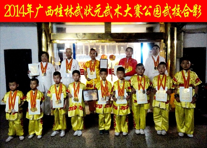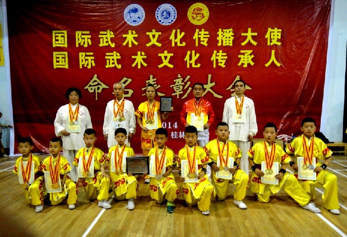 第二届广西传统武术健康交流大会,第五届华夏武状元国际争霸赛于2014年5月15日-----17日在广西桂林市第二体育馆举行,来自英国、日本、美国、巴西、克罗地亚、法国、香港、澳门、以及国内外88个代表队参加了本次大赛。经过两天紧张的比赛,获得金牌25枚,银牌10枚,共获金、银牌35枚的好成绩。