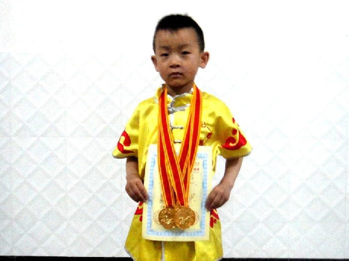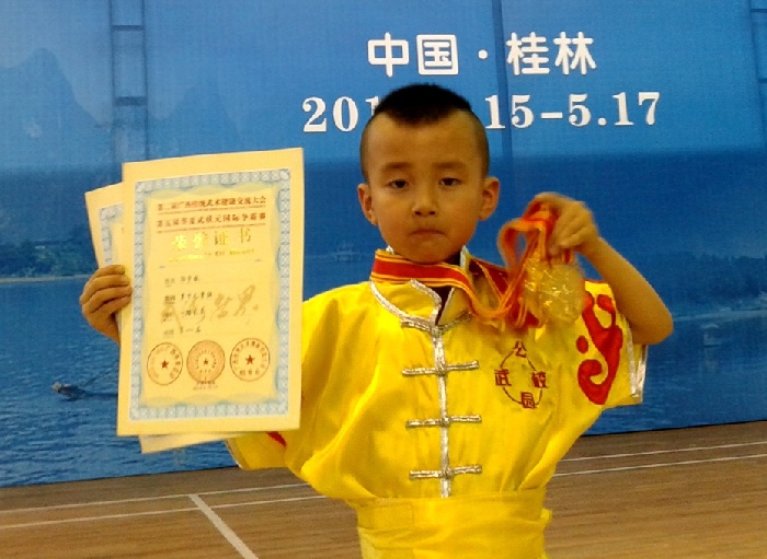 郭宇航:获得本次大赛五形八卦拳金牌,一路长拳金牌,少儿棍金牌。