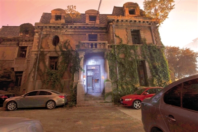 昨天下午,北京晨报记者来到了被传为“凶宅”的朝内大街81号。此时院门大开,院内的空地中停着数十辆轿车,看门男子也未阻止记者进入。三层欧式小楼上爬满红绿色的爬山虎,窗户多处残破,墙皮也有大面积脱落,西侧的老楼窗户则玻璃全无,极其通透地矗立在斜阳中。