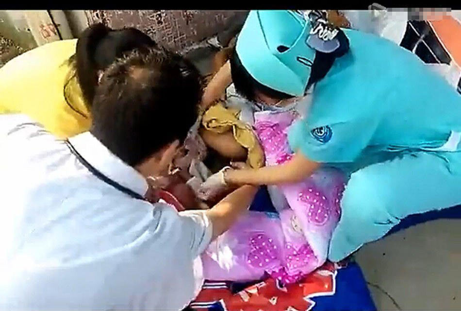 “怎么样?”张艳平奔到孕妇身边,此时孕妇几乎已经虚脱,只是微弱地说了一声:“出来了。”张艳平看到,旁边卖早餐的阿姨已经给孕妇身上铺了一块广告海报,但孕妇却出于害羞不敢脱下裤子,在张艳平的极力劝说下,孕妇才慢慢躺下了。“我帮她脱裤子,才发现孩子的身体已经出来了一部分,全身湿湿的,全是血。”张艳平回忆称,当时自己连一张纸巾都没有带,卖早餐的阿姨连忙赶回家拿来一块小毛巾。看到孩子已经出来了一部分,张艳平不断安慰着这位母亲,继续帮忙接生,约20分钟后,孩子整个身体都慢慢出来了。张艳平看到孩子的手在动,心里也松了一口气。“你生了一个男孩子哦。”张艳平告诉孩子母亲,看到孩子的鼻孔好像被黏膜覆盖,张艳平小心翼翼地去摸了摸婴儿的鼻子。“哇……”透过气来的婴儿终于发出了第一声啼哭。图为救护人员已赶到现场。