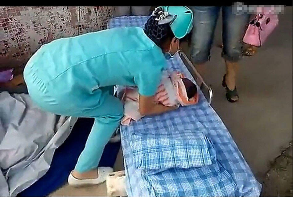 6月15日,在媒体的簇拥下,张艳平再次来到三水区人民医院,探望她帮助接生的母亲和孩子。记者从医院了解到,孩子的母亲名叫谭周婷,是广西人,到医院后,母亲身体里的胎盘也顺利脱落。孩子出生时体重6公斤,目前母子各项指标均正常。谭周婷表示,当天早上,怀胎9个月的自己和丈夫正准备去医院生产,丈夫临时去买一些生活用品,没想到丈夫走开不久,自己的羊水就破了。看到张艳平来医院探望,谭周婷湿润了眼眶,不停地对张艳平说“谢谢”。图为救护人员已赶到现场。